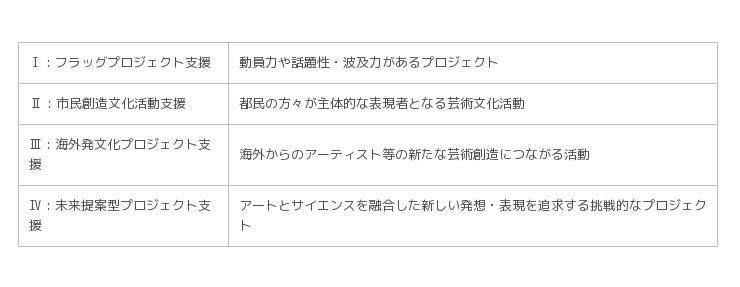 ・ 伝統と現代の共存をはじめとした独自性・多様性を持つ東京の文化を世界に発信するとともに、国際的な芸術文化交流を積極的に展開
