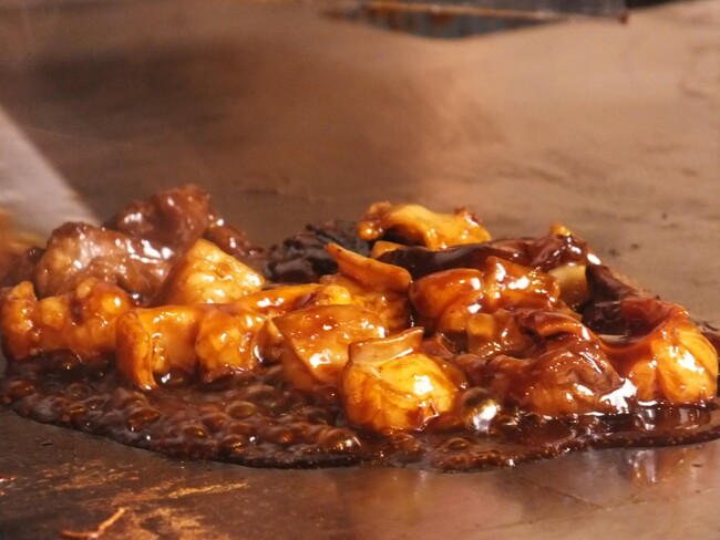 玉ねぎと醤油をベースにした、福岡では古くからなじみのある通称「ジャポネソース」で、ステーキだけでなくホルモンとの相性も抜群。