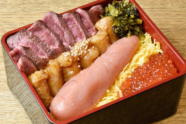 「福さ屋謹製辛子明太子を丸ごと1腹」「牛ミスジ」「丸腸」「いくら」等を使用した