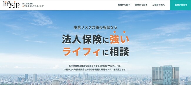 「法人保険ライフィ」は、様々な業種・分野の事業者様における経営リスク訴求コンテンツの発信、および法人向け損害保険・生命保険への加入相談サイトです。