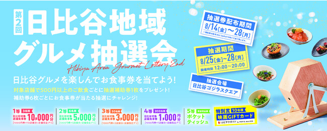 このたび一般社団法人日比谷エリアマネジメントは、日比谷商店会と有楽町町会の協力を得て、日比谷エリアの飲食店を活性化する抽選会を開催いたします。日比谷地域の飲食店に加え、東宝日比谷プロムナードビルの店舗も参加してのイベントです。