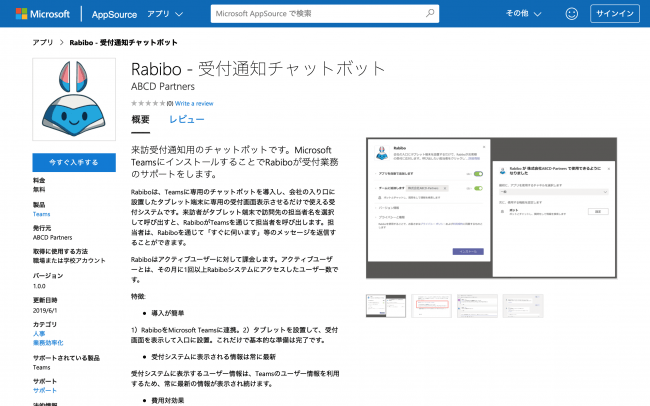 株式会社ABCD Partners(代表取締役:松野広志、本社:東京都千代田区)が提供する、チャットボット型 社内システム「Rabibo」(ラビボ)が、Slack、Workplace by Facebook、Chatworkに加え、Microsoft Teamsとの連携を開始しましたのでお知らせいたします