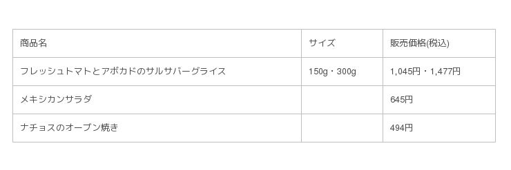 「フレッシュトマトとアボカドのサルサバーグライス」(写真左)を筆頭に、「メキシカンサラダ」(写真中央)「ナチョスのオーブン焼き」(写真右)の3種類が登場いたします。