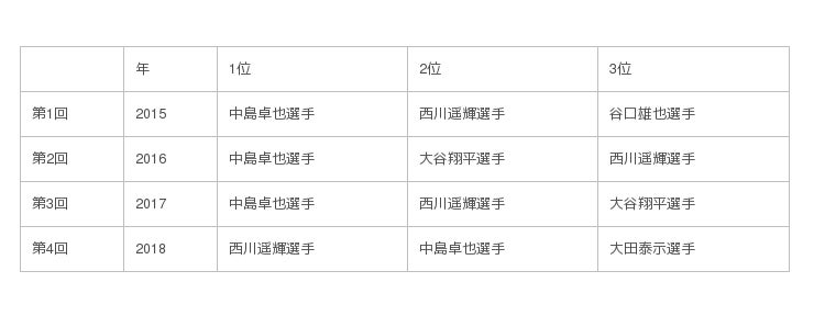 <過去の「彼氏にしたい選手No.1決定戦」の結果>