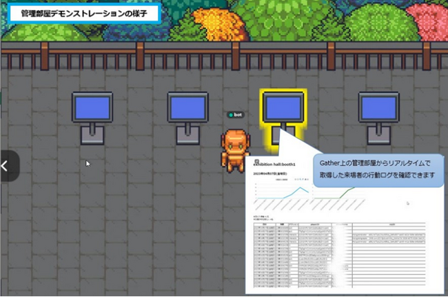 管理画面もバーチャル空間上に管理人室を設け、そこからログを確認できるようになっています。