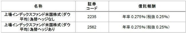 既存のダウ平均為替ヘッジありETF**も併せて引き下げ