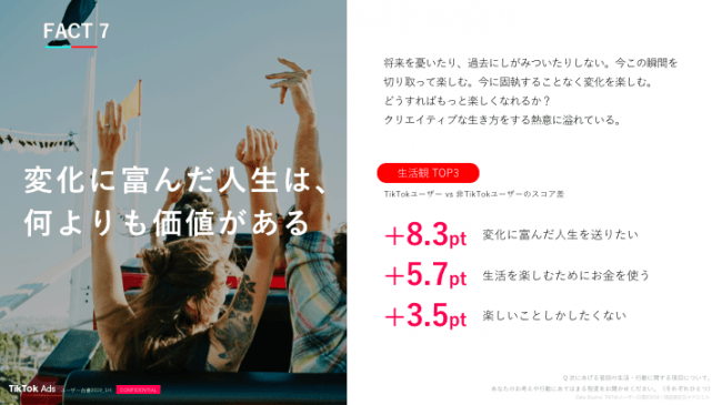 【FACT 4】 TikTokユーザーは、変化に富んだ人生に価値を感じる傾向がある。