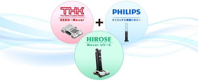 「Mover UV-C」は、照明及びIoT分野において世界最大手として実績を持つシグニファイ社「フィリップスUV-C除菌トロリー」の光源ユニット部分とTHK社の実績ある「SEED-Mover」を合体させた除菌ロボットで、それぞれのユニットが既に技術的に確立されており、高い信頼性を持つシステムです。