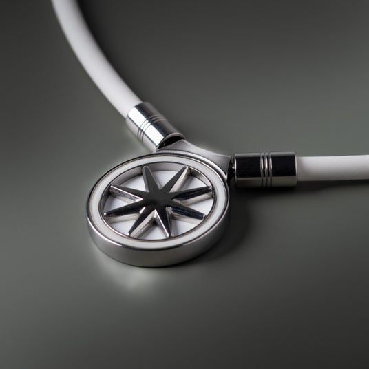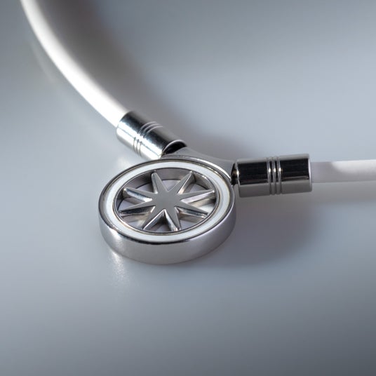 ヘルスケアネックレス Earth mini 2.0 White×Silver を着用
