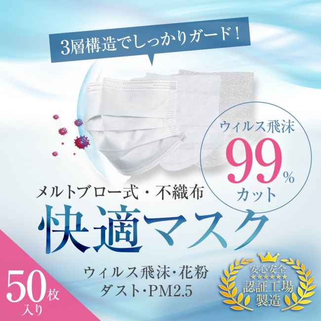 カラフル株式会社 (本社:東京都墨田区、代表取締役:齋藤康輔) は、「メルトブロー式不織布快適マスク」を自社のまとめ買いECサイト「ショッピン」にて販売しております。
