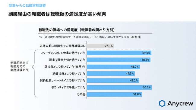 副業、フリーランスなどで事前に転職先との接点があった転職者は職場への満足度が高い傾向