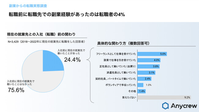 調査対象の24%が転職前に転職先での業務を経験。副業からの転職は全体の4%