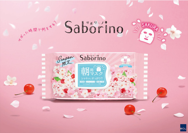 ▽サボリーノ 目ざまシート 桜の香り〈フェイスマスク〉1,300円(本体価格)