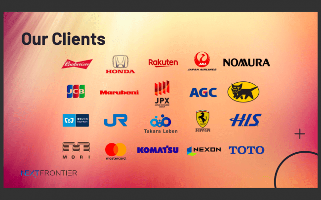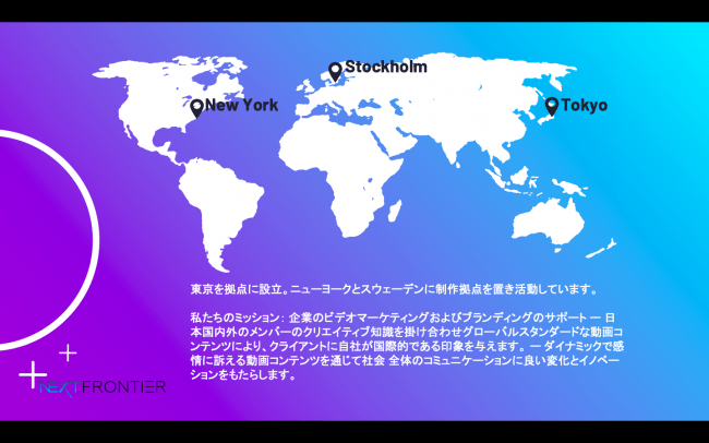 弊社株式会社 NEXT FRONTIER (http://www.nextfrontierinc.com) は東京(渋谷)、ニューヨーク、ストックホルムに拠点を置く