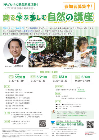 自然の講座はけやの森の活動をご紹介し、今回は脳科学者の小泉英明先生をお招きして、子育てを科学の視点から考えます。