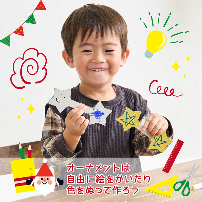 自由に絵を描いたり色を塗ってオリジナルのオーナメントをつくることで、飾り付けをより楽しむことができます。