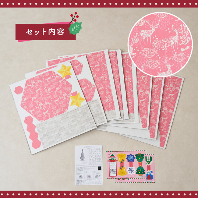 ピンクセット内容 (シート一式、組み立て説明書、オーナメント用イラストシート一式)