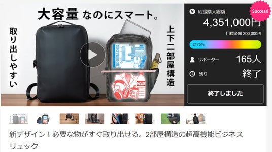 クラファンプロジェクトにて累計400万円以上調達したカメラも入るビジネスリュックの新デザインモデル
