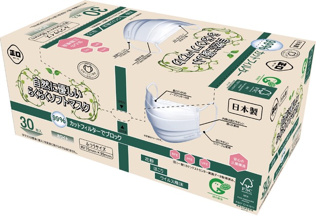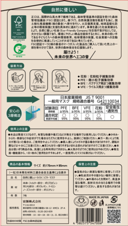 外装にFSC森林認証紙を使用し、環境にやさしいマスクです。