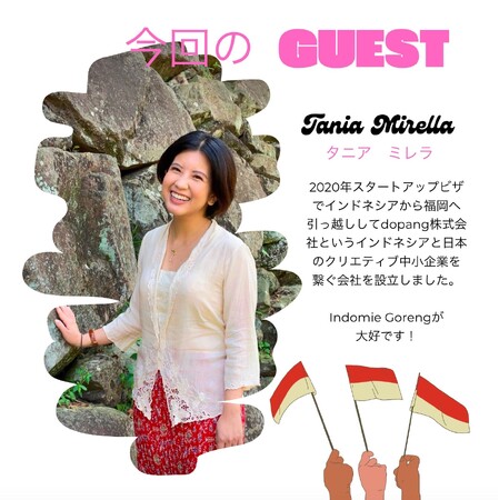インドネシアと日本のクリエイティブな中小企業を繋ぐ事業を展開する「dopang株式会社」代表のTania Mirella(タニア)氏が、母国インドネシアの郷土料理や飲み物を、ご参加のみなさまに提供します。