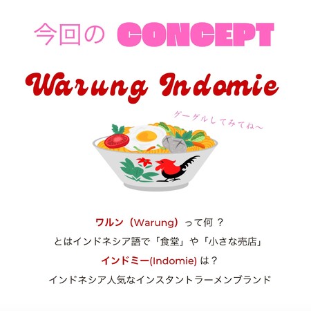 Tania Mirella氏(dopang株式会社代表取締役/一般社団法人YOU MAKE IT理事)による手作り郷土料理を食べべながら、参加者同士で交流することができます。その他に、持ち帰りができるインドネシアグッズも用意しています。