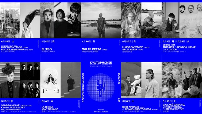 春の京都で能楽堂・寺院・日本庭園・クラブなどを舞台に、ワールドミュージック・現代音楽・クラシック・電子音楽・ジャズ、さらに文楽も加え、ジャンルも国境も超え、ここだけで実現する心が震えるような特別なコラボレーションをお届けします。