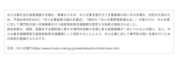 中小企業経営力強化支援法に基づき、財務局及び経済産業局が認定する機関です。