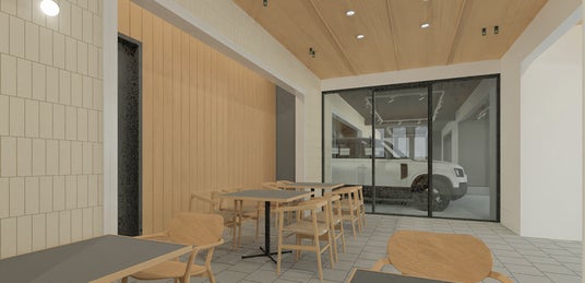 ブリティッシュタイルとウッドを活かしたミニマルでモダンなショールーム空間。