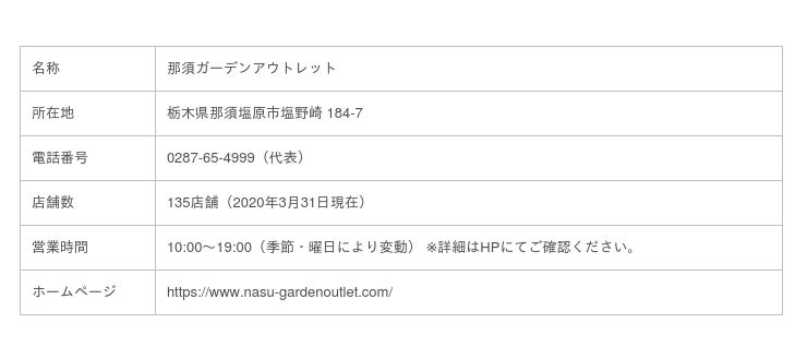 【那須ガーデンアウトレット施設概要】