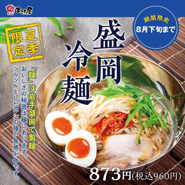 株式会社マコトフードサービス(本社:大阪府大阪市、代表取締役社長:笠井 政志)は、2023年5月10日よりラーメンチェーン「ラーメン まこと屋」にて販売開始した『盛岡冷麺』について、夏季の主力商品として夏季期間における販売を8月18日まで行うことを発表いたしました。