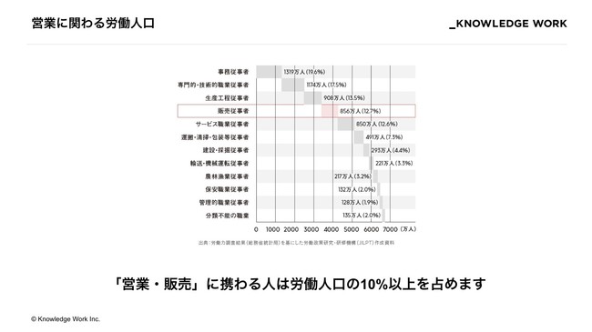 日本において、「営業・販売」に携わる人は労働人口の10%以上を占めます。