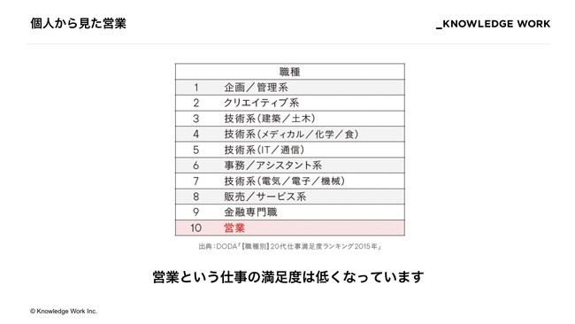 営業職は企業視点における労働生産性、個人視点における業務満足度から変革が必要な仕事と言えます。
