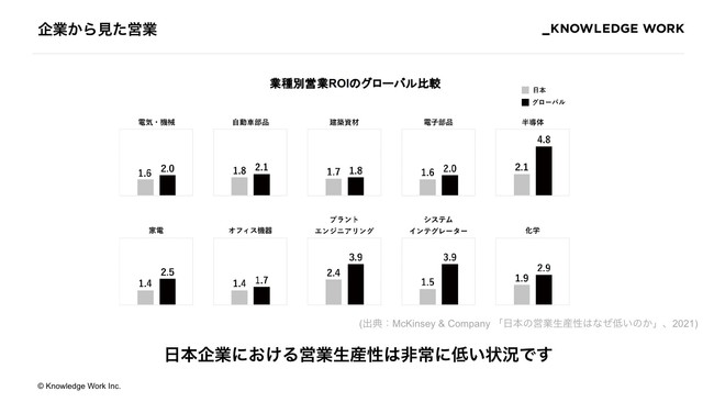 企業から見た営業は、国際水準と比べても極めて生産性が低い状況です。