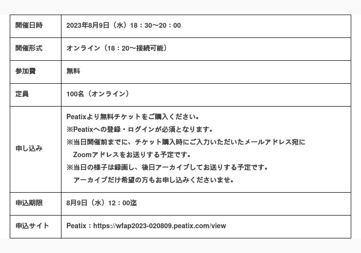 第1回:2023年8月3日(木)18時30分~20時00分オンラインセミナー(全4回/オンラインセミナー3回、リアルイベント1回)