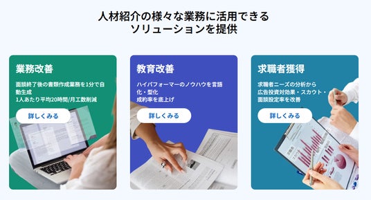 人材紹介業界では、面談から書類作成、マッチングまで多岐にわたる業務に追われ、本来注力すべき求職者とのコミュニケーションに十分な時間を割けないという課題を抱えています。さらに、ハイパフォーマーのノウハウが属人化し、組織全体での成果向上が困難な状況が続いています。