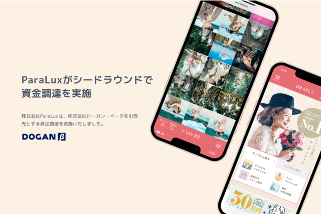 ウェディングプラットフォーム「ブラプラ」や「ブラプラWEB招待状」を展開する株式会社ParaLuxは、株式会社ドーガン・ベータを引受先とする資金調達を実施いたしました。今回調達した資金で、フリーランスのウェディングクリエイターの認知度の向上や、WEB招待状周辺サービスの拡充など、カップルを手厚くサポートするための体制をより一層拡充してまいります。