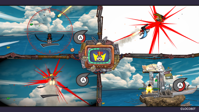 『ぶっとバード』は、”ジェットパック”と呼ばれる武器を身にまとった“トリ”を操作して、ライバル達をぶっ飛ばす4人同時プレイが可能な対戦アクションゲームです。