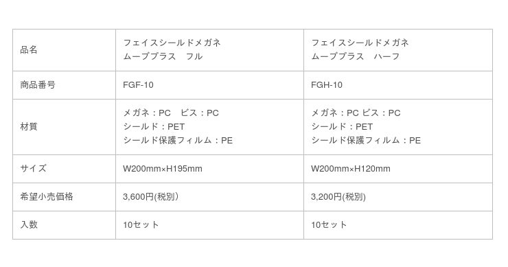 衛生用品、紙製品、文房具の製造、輸入、販売等をおこなう株式会社YKC Japan (本社:千葉県千葉市、以下 YKC Japan)は2020年12月1日(火)にメガネ型の可動式フェイスシールド、「フェイスシールドメガネ ムーブプラス」を販売開始いたします。フルサイズ(195mm)とハーフサイズ(120mm)の2種類です。日常生活でもご利用いただけるよう透明で自然なデザインに仕上げました。