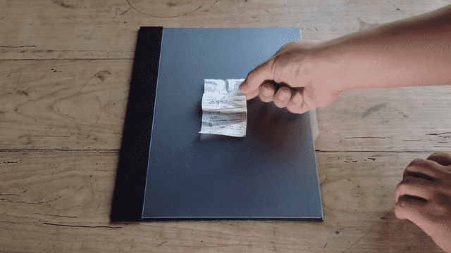 低反射シートとそれを挟んでいるバインディングボードに挟まれると、適度な摩擦と静電気の発生により、レシートが動きにくい状態となります。斜めに傾けても撮影することができるため、デスクにスペースがなくても大丈夫。その場でレシートのスキャンを始めることが可能となります。
