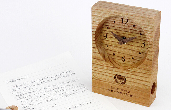 卒業・卒園・卒団の記念品につきましても、木目がつながる時計は木の暮らしだけのオリジナル商品です。