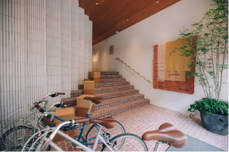 今回Kant.に生まれ変わったこのビルは52年間六本木を見守ってきた歴史ある建物ですが、都市開発の中でいずれ取り壊される予定があります。そこで私たちが考えたのは、「残らないもの」に貴重な資源を費やすことへのモヤモヤを、どうやってポジティブに変換するかということ。 期間限定の空間をつくるにあたって「リユース=還ること」をテーマにKant.のサイン計画を行いました。 エントランスで来客をお迎えするコルクのスツールは座るという役割以上に素材の循環を伝えるのに欠かせない存在となっています。 また、北村さんと共に座面にクッション性をもたせた特殊なつくりにも挑戦しています。 ぜひコルクプロダクトの新たな可能性を感じて頂きたいです。