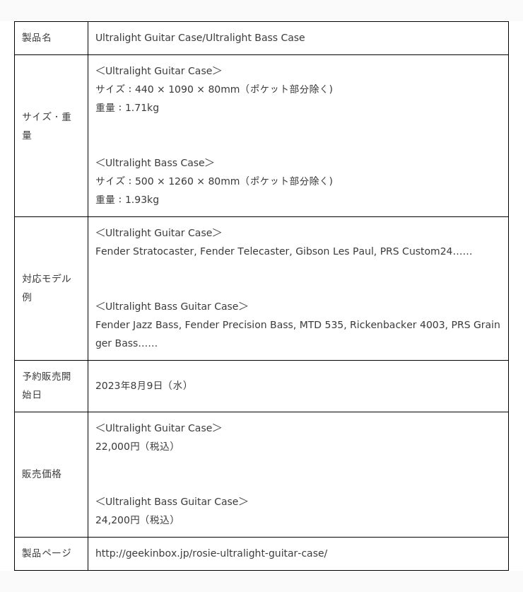 [ROSIE Ultralight Bass Guitar Case 商品ページURL]http://geekinbox.jp/rosie-ultralight-guitar-case/
