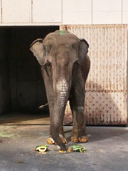 1967年にタイから池田動物園に来園したインドゾウのメスの個体です。2016年に51歳で亡くなりました。約半世紀にわたり池田動物園の顔として多くの人々に親しまれてきた個体です。高齢になるまで丁寧に飼育されており、高齢化や長年の食べ方の癖に伴う歯のすり減り方などの再現にこだわって制作しました。