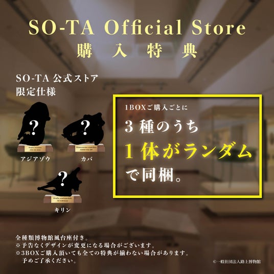 「博物館はもっと面白い」をビジョンに掲げる非営利法人である一般社団法人路上博物館(東京都文京区、代表理事森健人)はカプセルトイメーカーの株式会社SO-TA(東京都渋谷区、代表安藤こうじ)と共同で日本初の動物園や博物館に由来する標本を3Dスキャンしたデータを基に作った「路上博物館 特別展-植物食-」を2024年4月に発売することをご報告いたします。