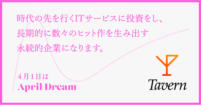 当社は、4月1日を夢を発信する日にしようとするApril Dreamに賛同しています。このプレスリリースはTavern(ターベルン)の夢です。