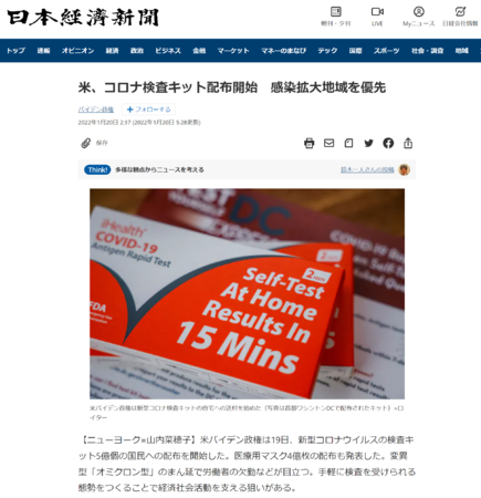 また、米国連邦政府が全国民へ配布した抗原検査キットは、その大半はihealth社の製品であります。