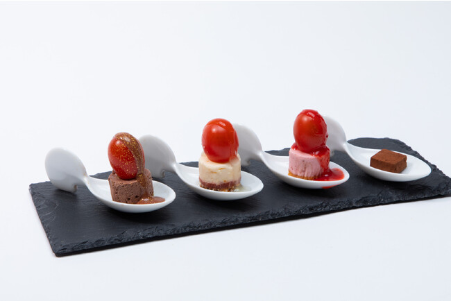 ・プチケーキ 3 種(ショコラ ・チーズケーキ・フレーズ)・ OSMIC トマトを使った生チョコレート