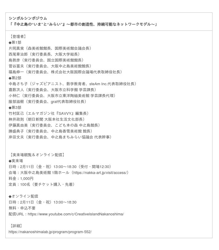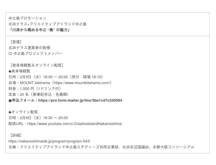 クリエイティブアイランド中之島 事務局