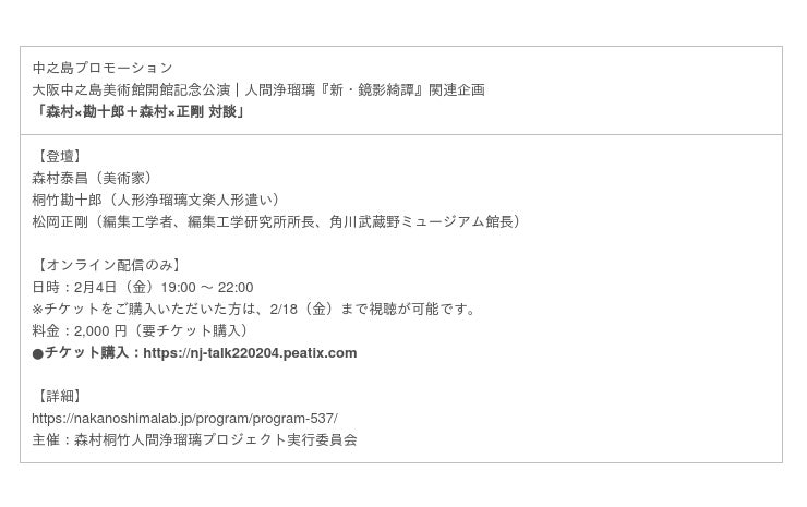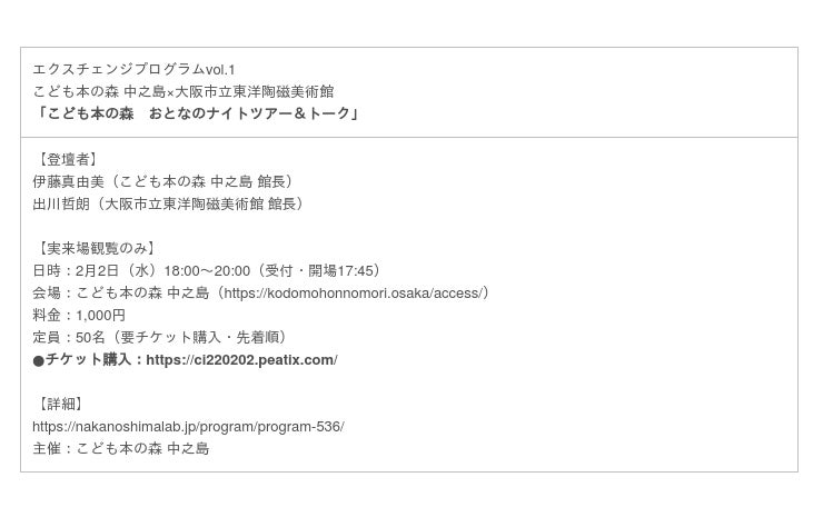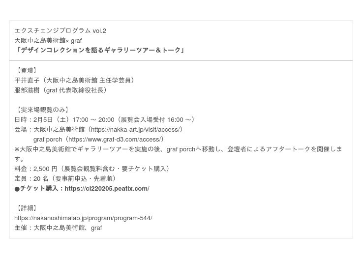 こども本の森 中之島 × 大阪市立東洋陶磁美術/DOMMUNE × 中之島/大阪中之島美術館 × graf/大阪市立科学館 × 大阪市立東洋陶磁美術館/岡田利規 × graf/大阪国際会議場 × graf × コンラッド大阪 × リーガロイヤルホテル…and more!