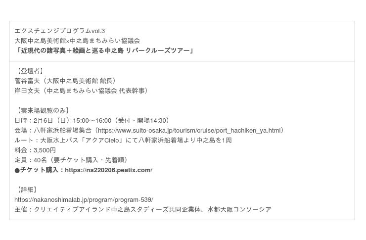 主催:クリエイティブアイランド中之島実行委員会